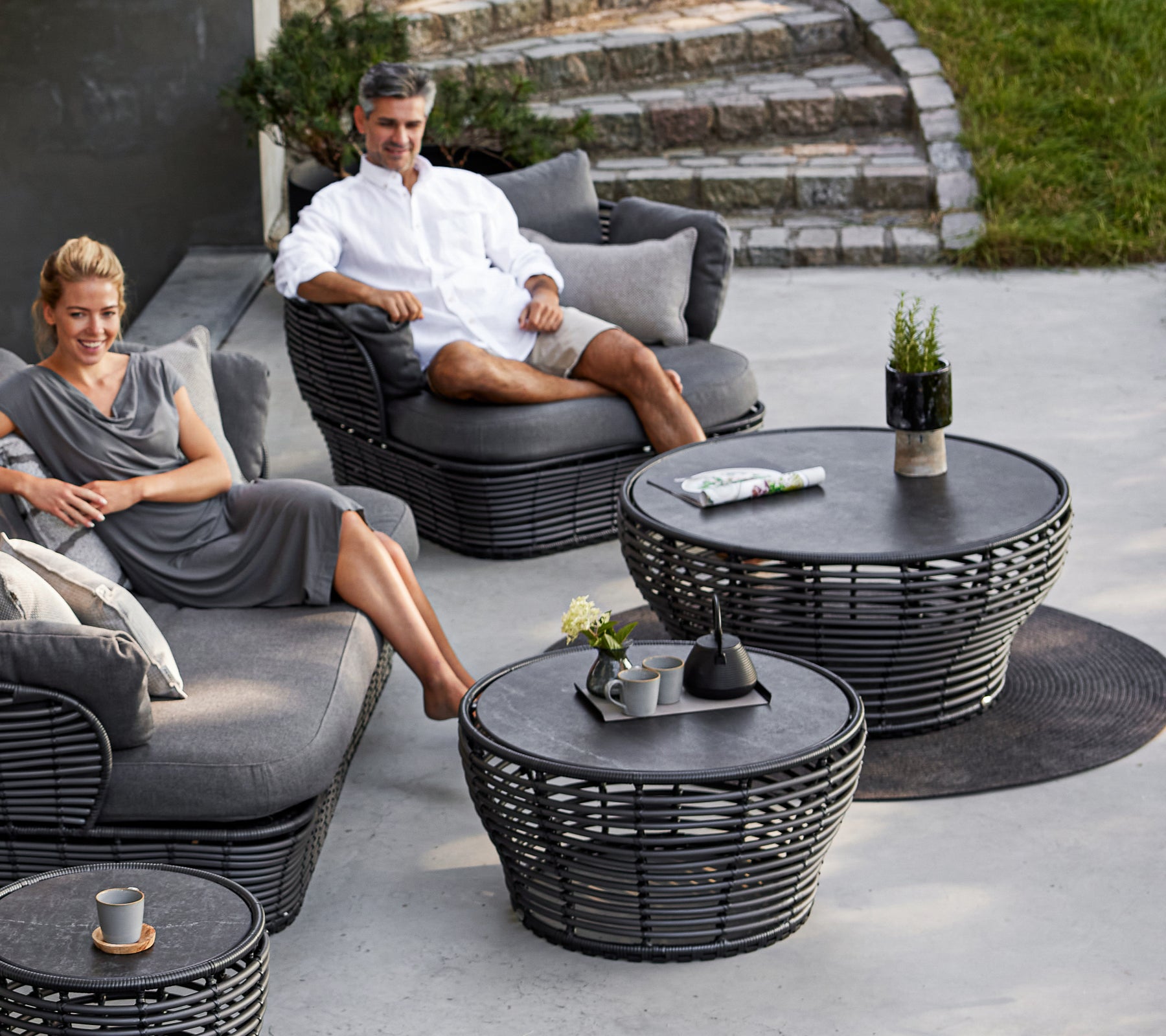 Basket coffee table is designed in collaboration with Søren Rose Studio. A coffee table inspired by the nature with its round shapes providing an organic design expression. Basket coffee table is manufactured in the durable Cane-line Weave® on a hot-dip galvanized steel frame with an elegant ceramic tabletop. The combination of soft curves and edgy ceramic tabletop creates an eye-catching and refined look for your outdoor lounge area. The Basket coffee tables are available in three sizes, which complement each other beautifully.