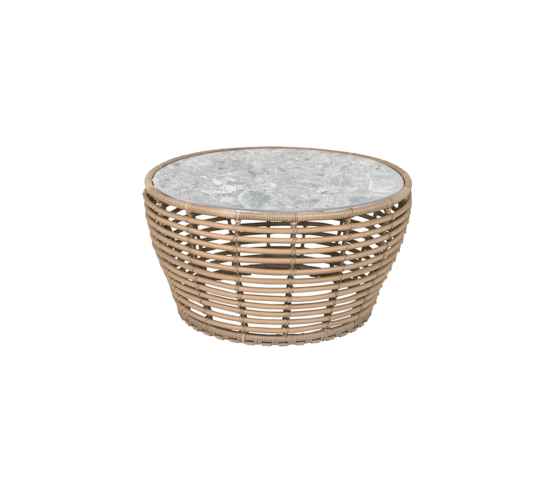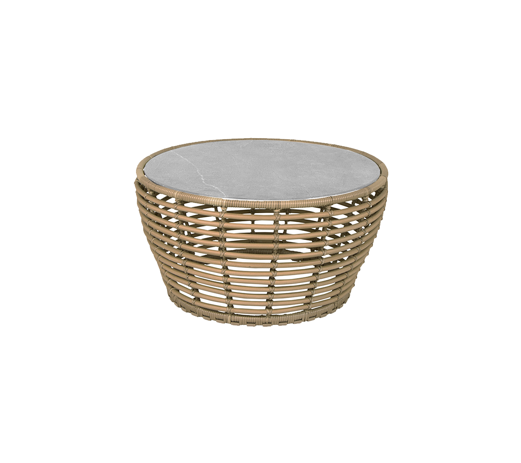 Basket coffee table is designed in collaboration with Søren Rose Studio. A coffee table inspired by the nature with its round shapes providing an organic design expression. Basket coffee table is manufactured in the durable Cane-line Weave® on a hot-dip galvanized steel frame with an elegant ceramic tabletop. The combination of soft curves and edgy ceramic tabletop creates an eye-catching and refined look for your outdoor lounge area. The Basket coffee tables are available in three sizes, which complement each other beautifully.