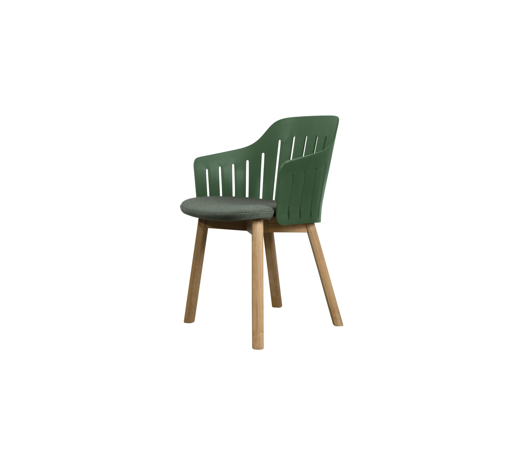 The Choice chair with teak legs combines a warm, tactile expression with a contemporary and versatile seat shell design. The distinctive teak legs create a warm, organic tone in your outdoor dining space, while the sculpted seat shell – made from up to 98% recycled polypropylene – offers comfortable support. Grooves in the back ensure a flexible backrest and optimal airflow, making the chair comfortable for sunny lunches and long summer evenings.